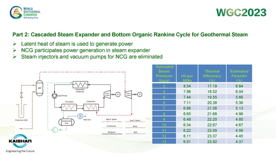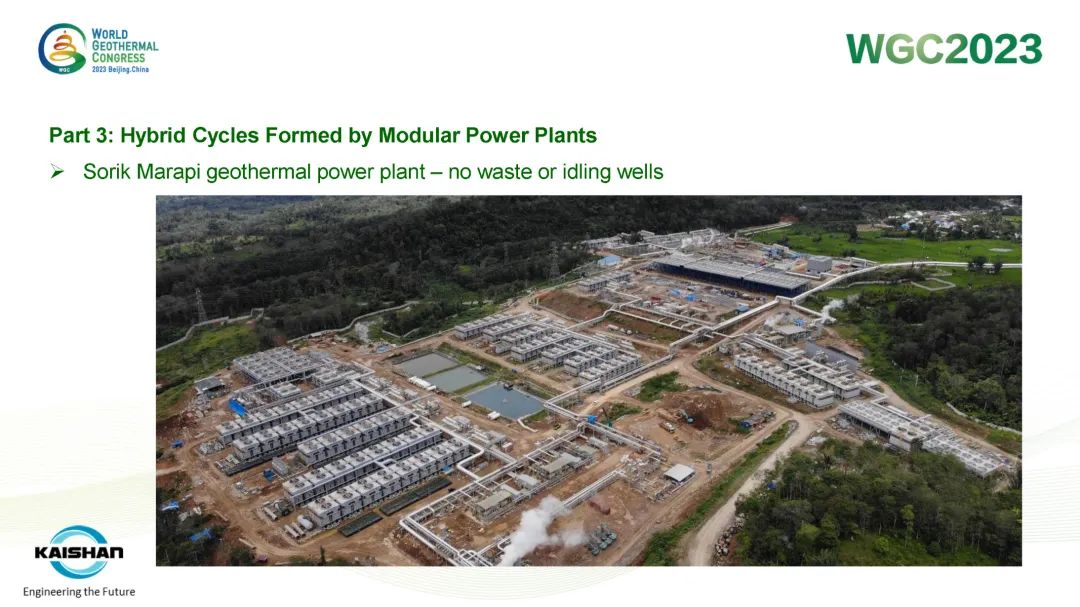 汤炎博士着重介绍了由太阳成集团tyc7111EPC建设的肯尼亚Sosian-Menengai地热电站及太阳成集团tyc7111自主开发、建设、运营的Sorik Marapi地热电站成功案例。Sosian-Menengai地热电站采用“蒸汽膨胀机+湿蒸汽ORC膨胀机”模块电站串级循环,无需采用传统中央电站分离不凝性气体的蒸汽喷射器和真空泵,从而降低了电站寄生负荷、提高其发电效率。Sorik Marapi项目是公司各类型模块电站的集大成者,高压蒸汽井、低压蒸汽井、热水井热源均可得到充分利用,进而使项目实现“无闲置低压/低温井”。模块电站“量体裁衣”式的解决方案通过提高井热效率改善了地热开发的经济性,也通过独树一帜地有效利用低压地热井及热水井,显著降低了资源钻探的单位成本。
