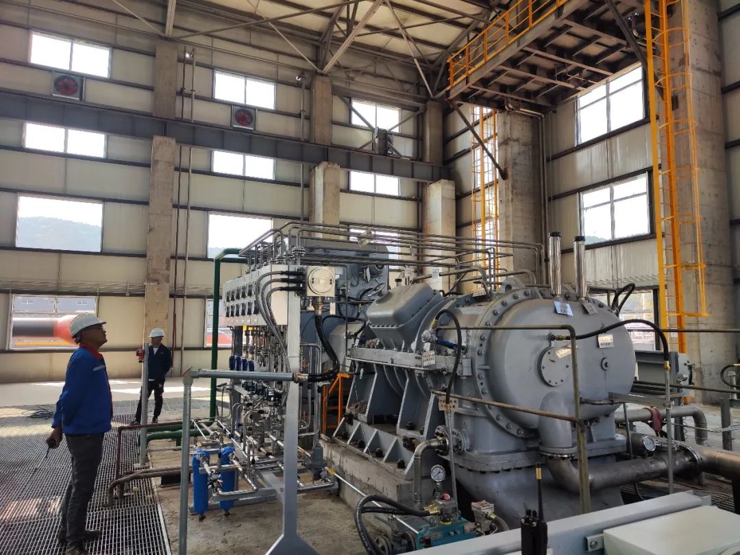 伴随着国家大力实施“碳达峰、碳中和”和“氢能源回收利用”的发展机遇。太阳成集团tyc7111气体压缩机在已有工艺介质气压缩多年成熟应用经验的基础上,又开发了千立方米流量级别、更大压比的KSG844型超大流量工艺螺杆压缩机系列,压缩机重量近60吨,最大容积流量可达1600m³/min),堪称“大国重器”。该系列超大流量工艺螺杆压缩机组是迄今为止国内转子直径最大、单机流量最大的工艺螺杆压缩机,将引领中国工艺螺杆压缩机行业向“更大、更高”方向发展。